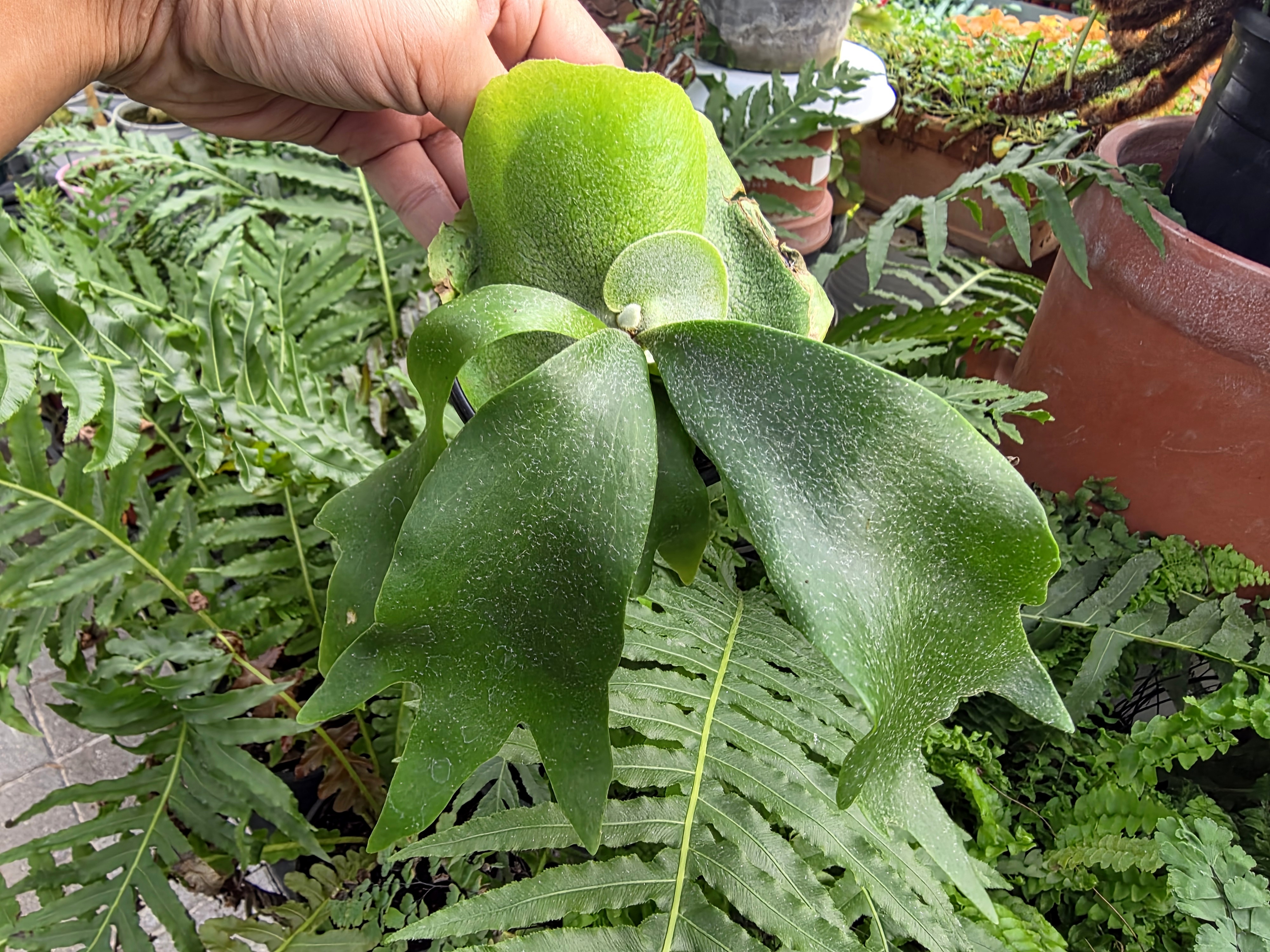 둥근 잎(포엽, 또는 영양엽)이 매력적인 착생식물이죠. 박쥐란은 그 자체로 예술 작품 같아서, 목부작이나 수태볼에 매달아 행잉 플랜트로 키우면 이국적인 분위기를 연출할 수 있습니다.